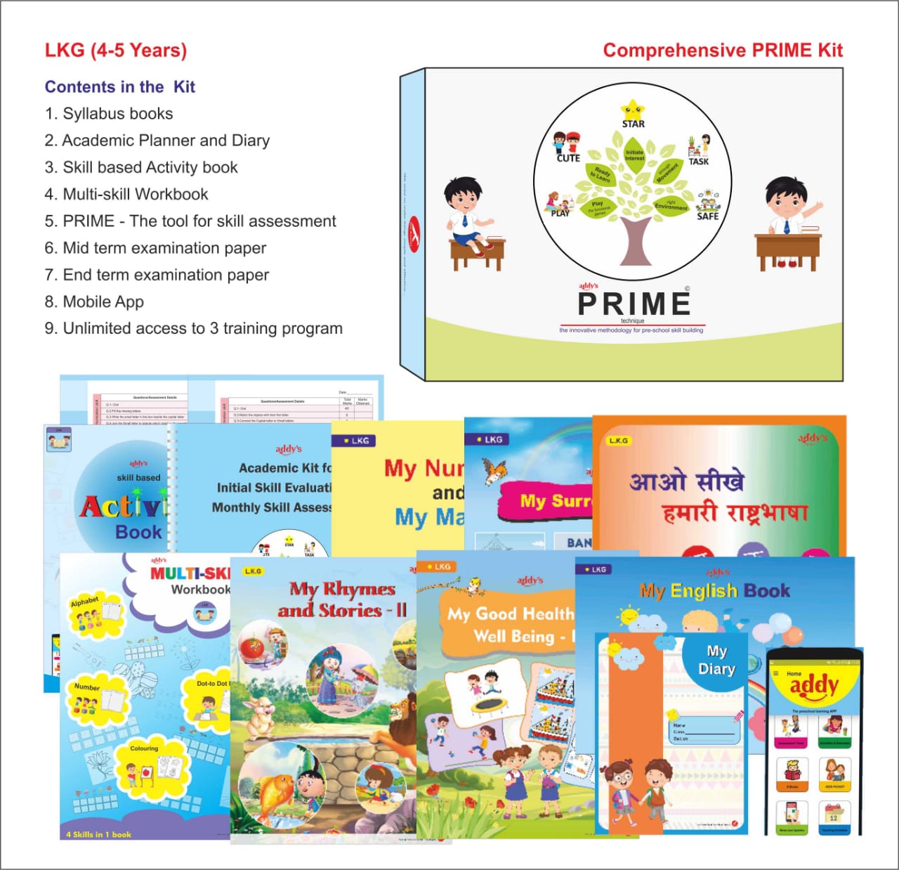 Adiuvaret kids brings all possible avenues for the skill building through the COMPREHENSIVE PRIME kit for LKG. This kit includes the following
