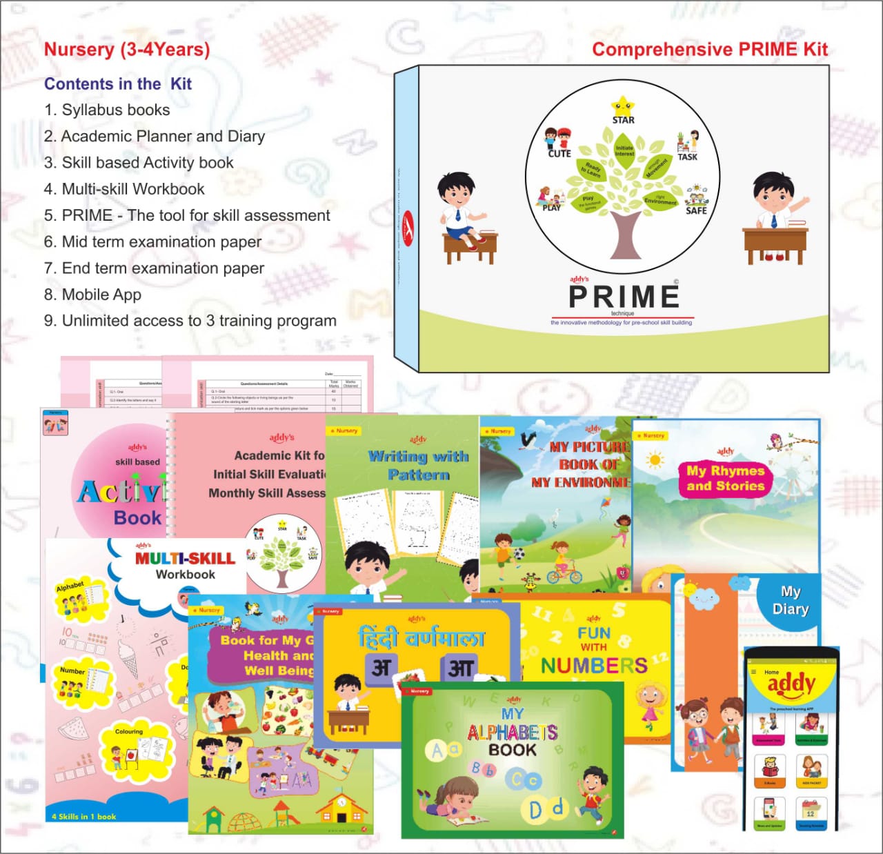 Adiuvaret kids brings all possible avenues for the skill building through the COMPREHENSIVE PRIME kit for the children between 3-4 years (Nursery or Pre KG). This kit includes the following
