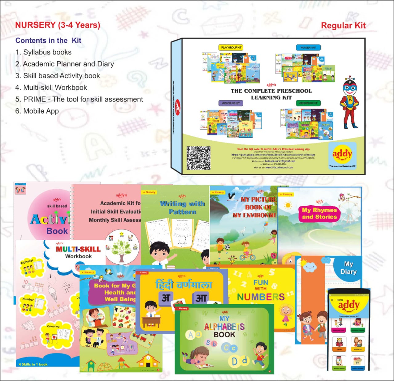 This the most commonly used kit in the Nursery (children between 3 to 4 years old). This includes the following;