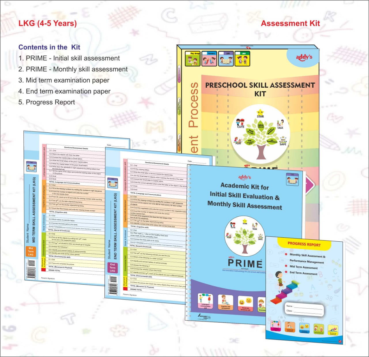 This kit provides an easy and innovative skill assessment for the kids in age group of 4-5 years (LKG). This also provide an overall skill development plans. This kit includes the following