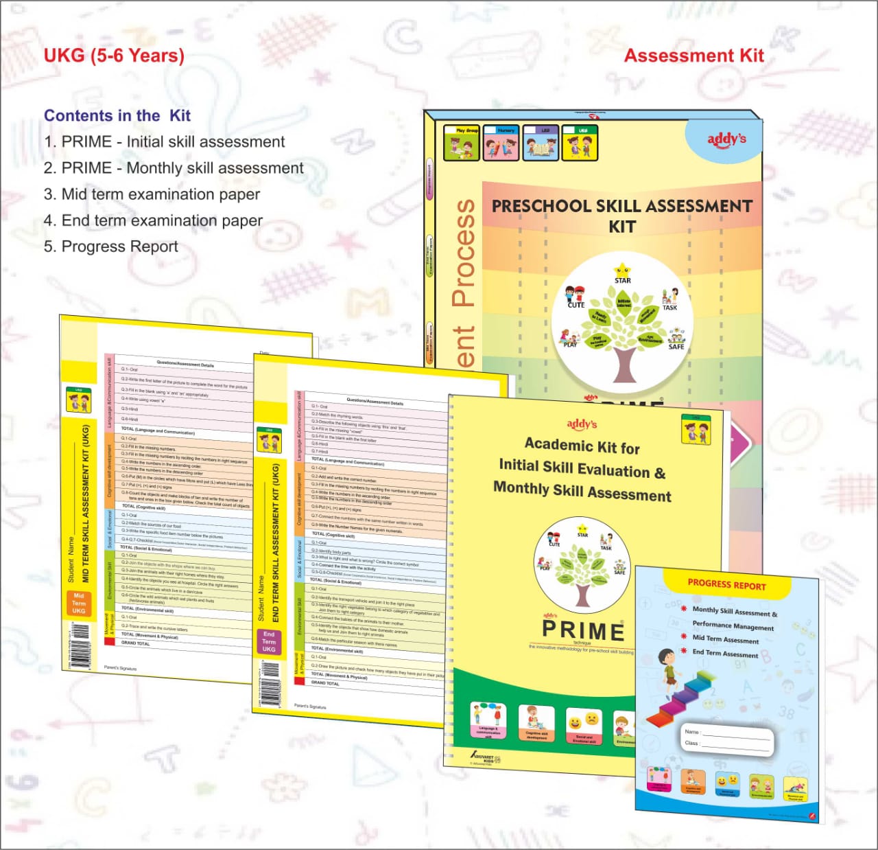 This kit provides an easy and innovative skill assessment for the kids in age group of 5-6 years (UKG). This also provide an overall skill development plans. This kit includes the following